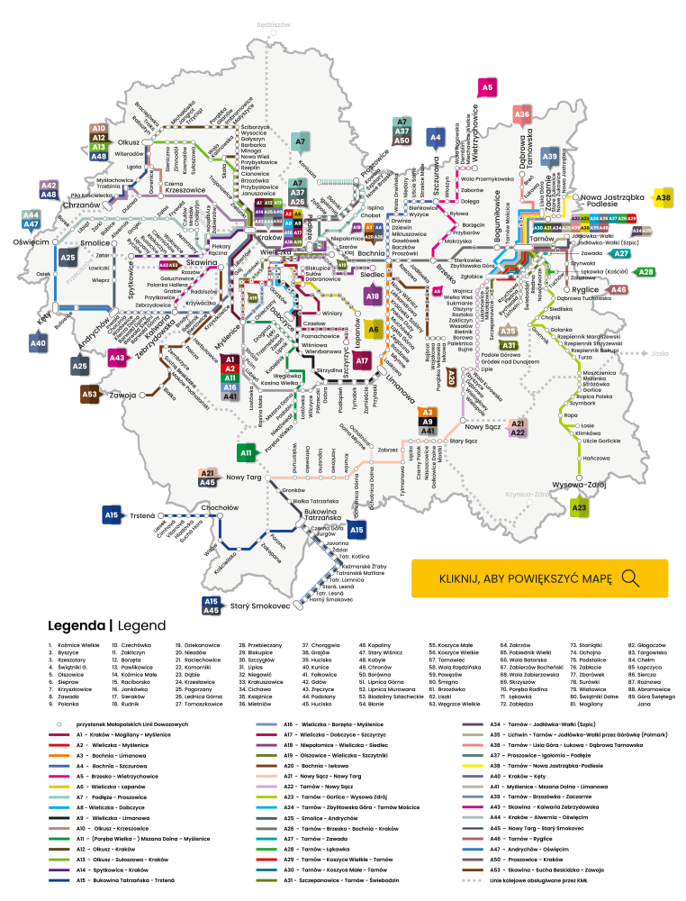 Skomunikowanie umożliwia podróżnym kontynuowanie podróży Małopolskimi Liniami Dowozowymi.