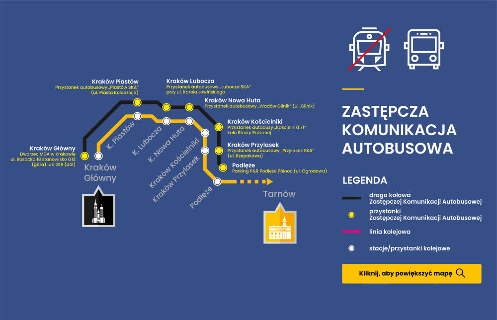 -> w dniach od 16 stycznia 2026 r. do 7 marca 2026 r. na trasie SKA2 na odcinku Kraków Główny - Podłęże